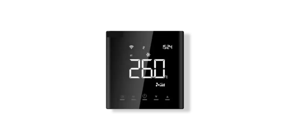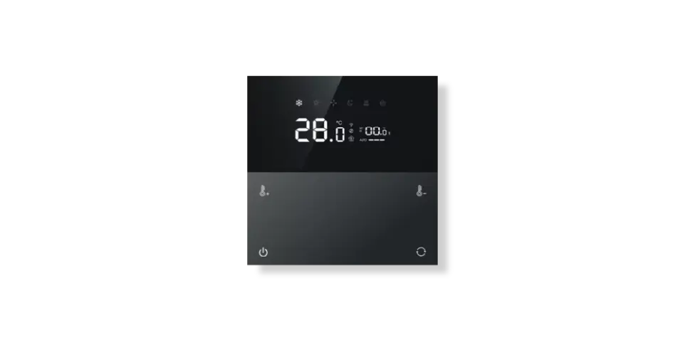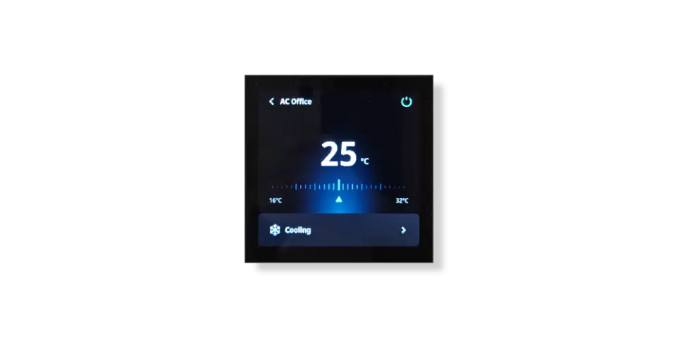 A minimalist touch thermostat coming in different colours.